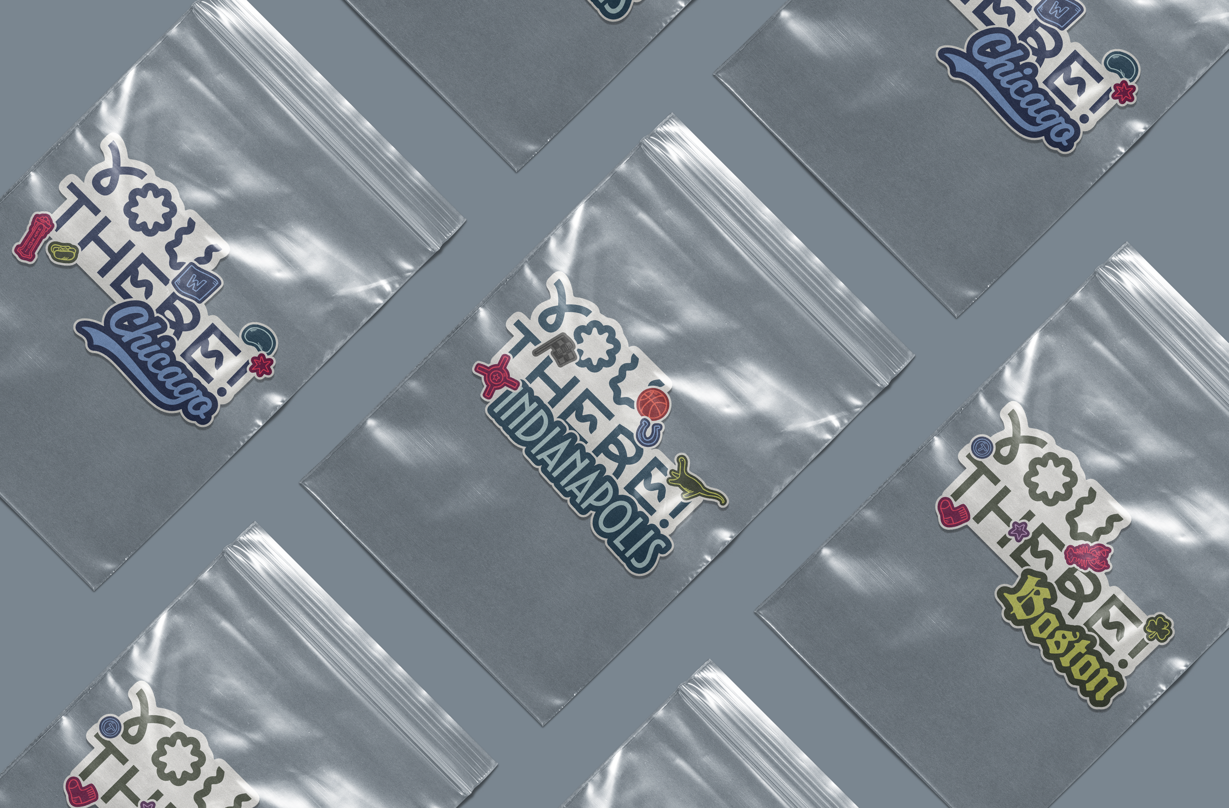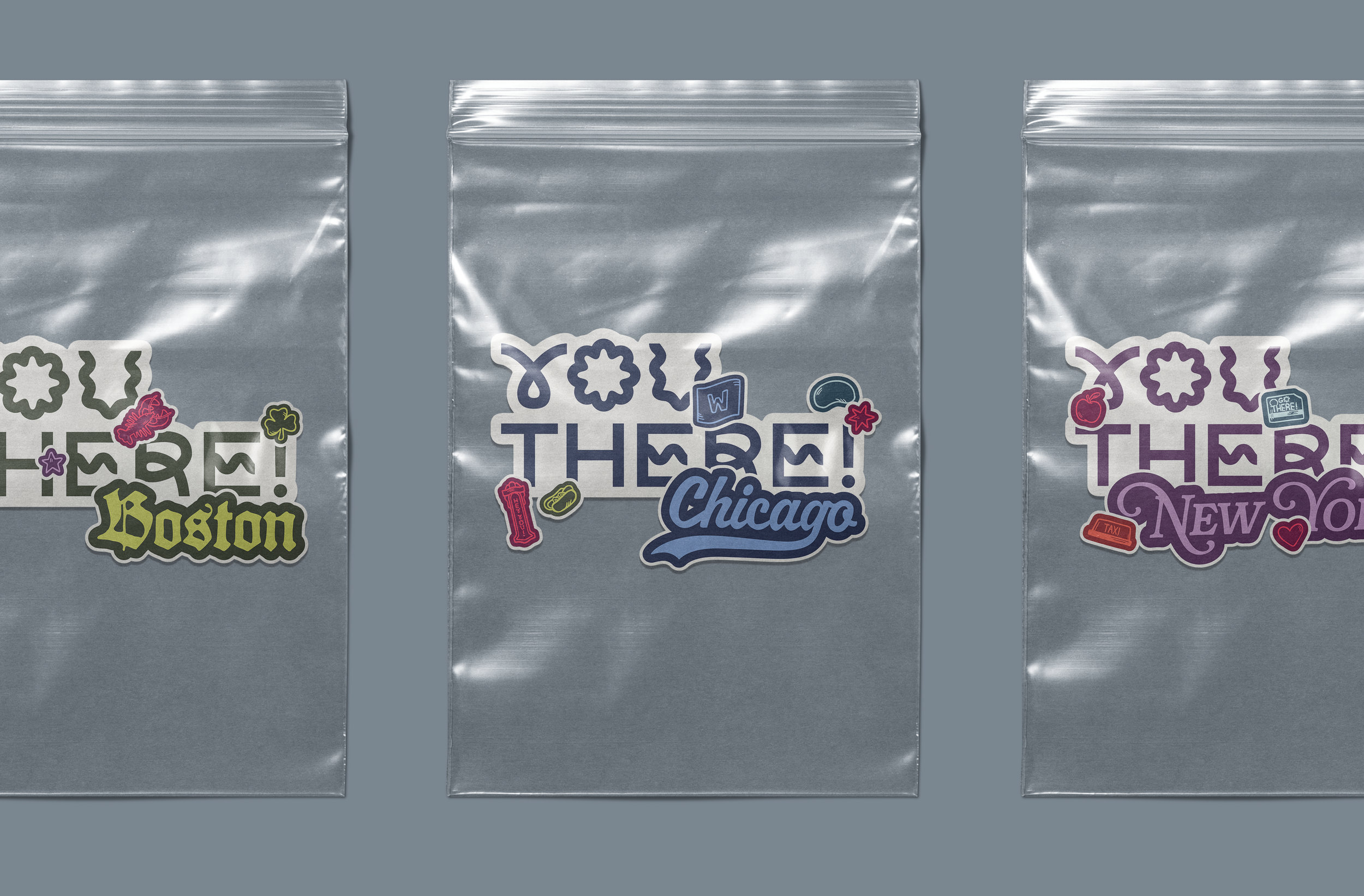 to showcase what city it’s for, as well as some popular iconography to better connect the stickers to their locations.